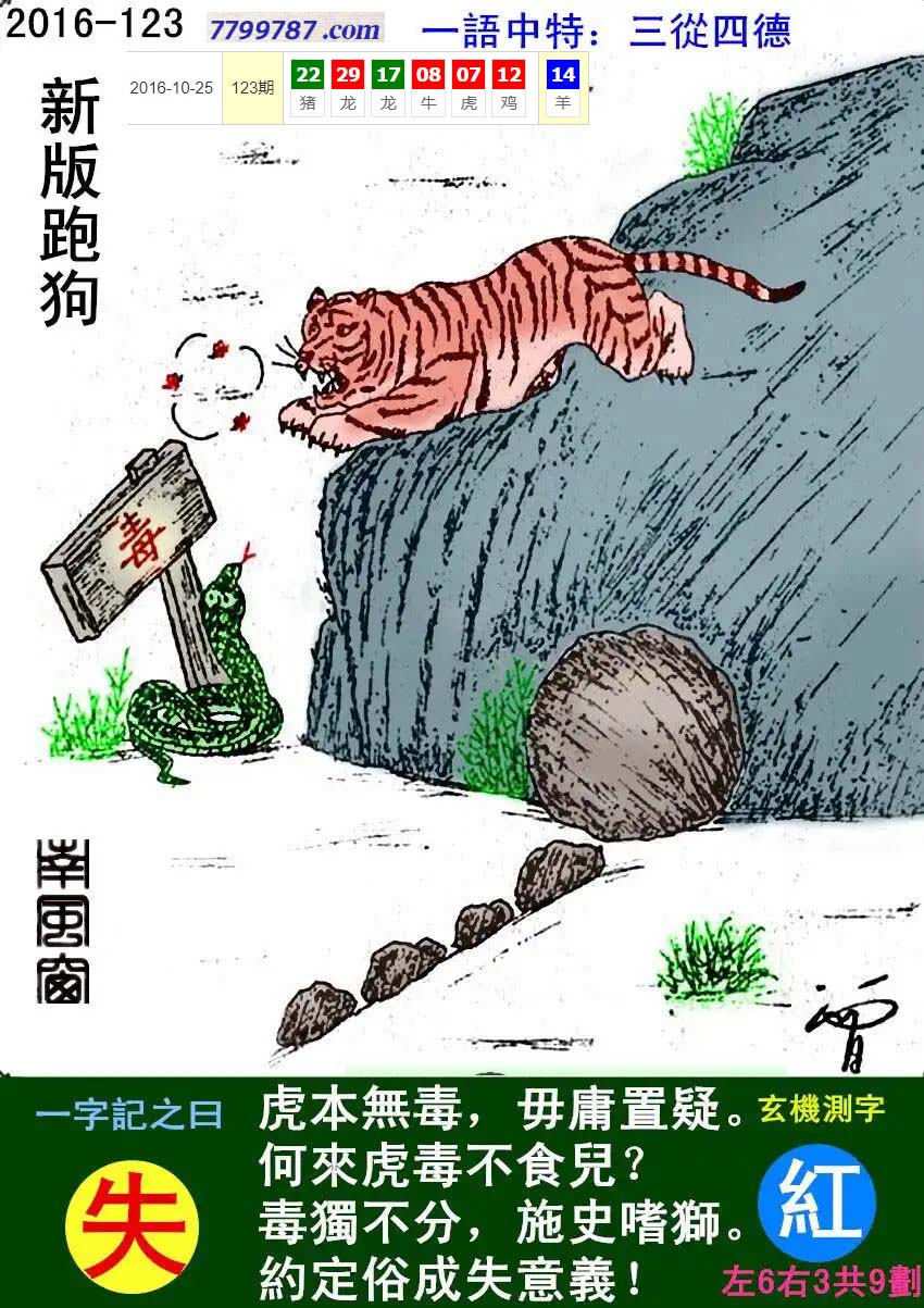 095期新版跑狗一字記之曰:【毒】