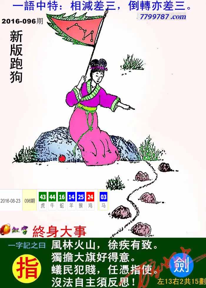 117期新版跑狗一字記之曰:【指】