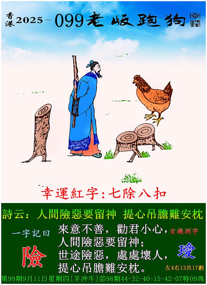099期老版跑狗一字記之曰:【險】 玄機測字:《璦》