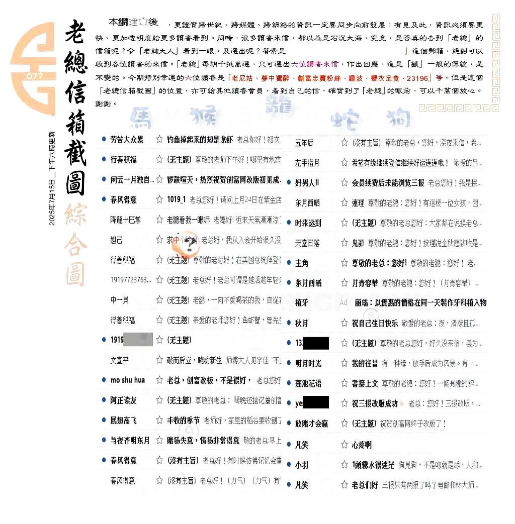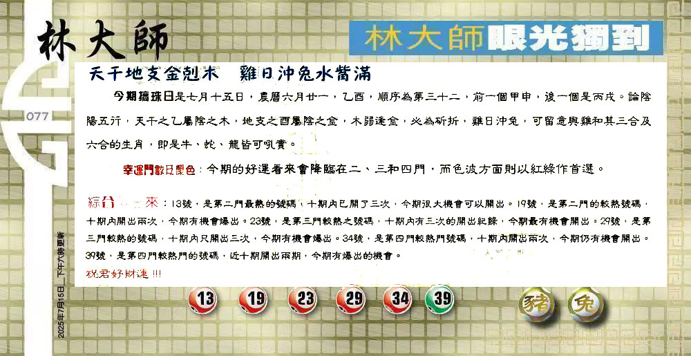 077期:六合皇金句/老总论码/萧公子/林大师/五行夺码/老总信箱截