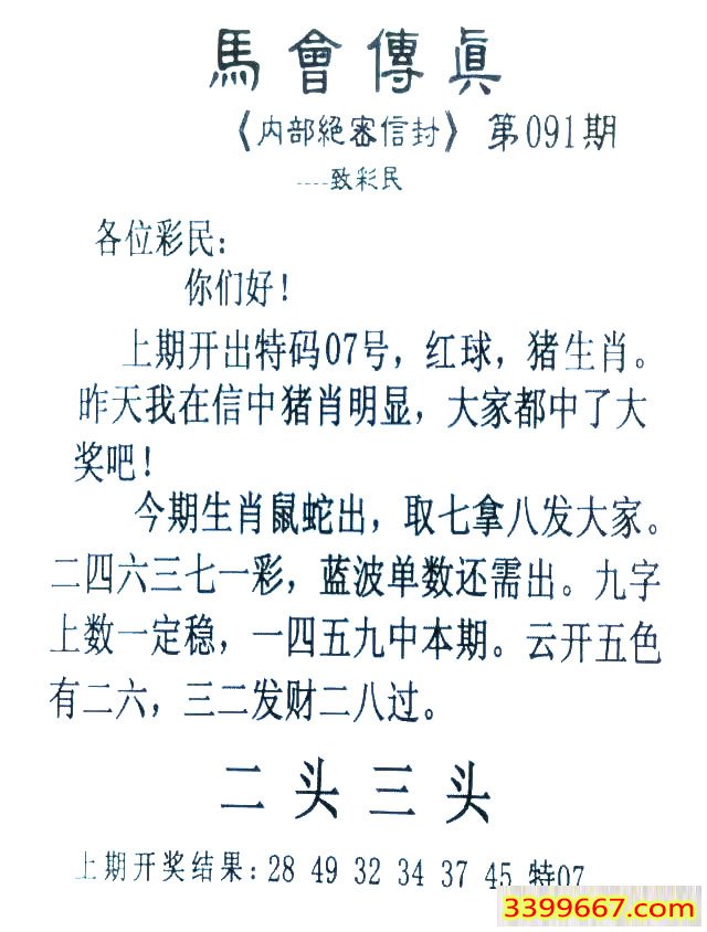 091期:首发推荐:≮馬會傳眞≯→(香港正版)