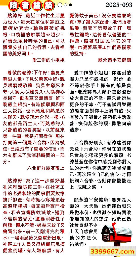 〖六合群好朋友〗:老總建議你先放下六合彩,你現在的狀態只會為你帶來更多的麻煩,老總甚至在你信中感受到你對人生的迷惘,你應該先學懂愛自己,再次確立自己的信心,才再接觸六合彩,否則你會慢慢走上「成魔之路」 。