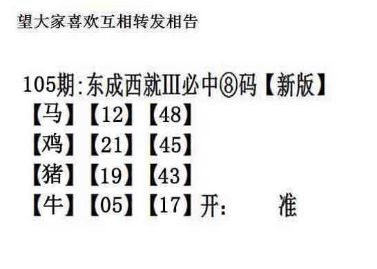 105期:另版【东成西就四肖8码】