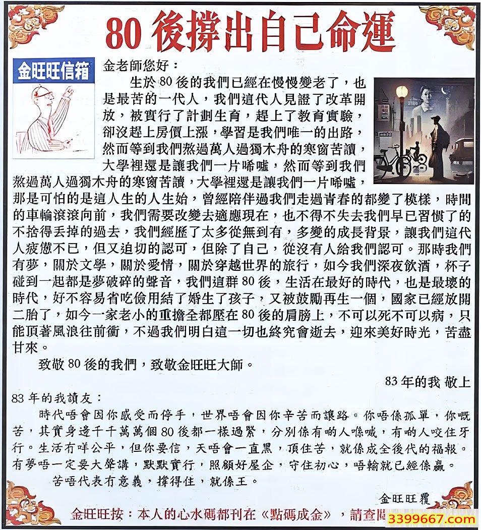 122期:金旺旺信箱彩民推荐→→《80 後撐起自己命運》