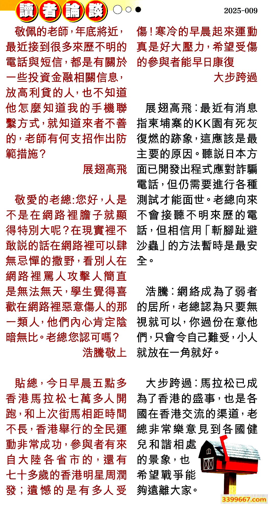 〖展翅高飛〗:最近有消息指柬埔寨的KK園有死灰復燃的跡象,這應該是最主要的原因。聽説日本方面已開發出程式應對詐騙電話,但仍需要進行各種測試才能面世。老總向來不會接聽不明來歷的電話,但相信用「斬腳趾避沙蟲」的方法暫時是最安全。
