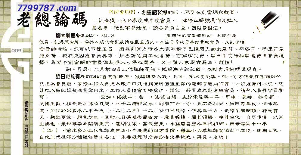 009期:六合皇金句/老总论码/萧公子/林大师/五行夺码/老总信箱截